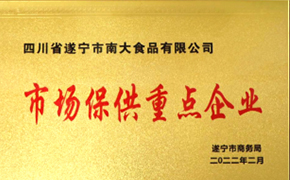 四川省遂寧市南大食品有限公司——法人獨(dú)資、國家級重點(diǎn)龍頭企業(yè)。在歷經(jīng)走村串戶、挑擔(dān)經(jīng)營、作坊生產(chǎn)后,2004年3月公司正式注冊成立,通過20余年的努力,公司完成了生豬養(yǎng)殖——屠宰加工——生物科技產(chǎn)品智造——冷鮮水產(chǎn)市場專屬經(jīng)營的多元化產(chǎn)業(yè)布局。公司現(xiàn)有員工360人,總部占地101.7畝,注冊資本5000萬元,總資產(chǎn)近10億元,擁有冷庫3萬噸,年屠宰加工生豬能力100萬頭,年產(chǎn)值13億余元,系“農(nóng)業(yè)產(chǎn)業(yè)化國家重點(diǎn)龍頭企業(yè)”。